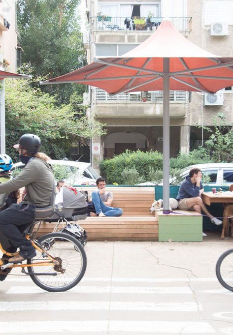 Together with Nadel Roizin Architects, we designed for the city an "Open Café." It's a place where friends meet each other, people work with their laptops, children play, and visitors can observe the passersby on Nordau Boulevard.